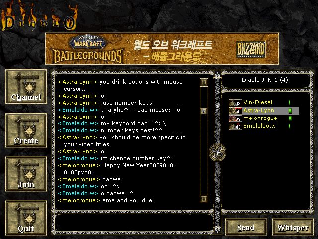 最初に West LEでShadeさんと30分ほどpvpできました またあとでの約束をして 私はjpnにもどると、お初っぽい、お方が!?w でLuciさんNasuさんと4人でHell 実は私、お初っぽい、お方のもっているBowをみて....あれっ? と思いましたw chatにもどるとPocoさんをまじえて 談笑していると... BBさんだった^o^wao で即duelsima888をCしてくださって あぁ~熱い熱いw 復帰後はじめてのムササビ体験 BBさんとの1on1で私のmanaはすっからかんw nasuさんにShadeさんのことを話すと Euroへ確認してくるとのこと ありがとう^^ さっそくShadeさんがJoin 4人で真冬の灼熱体験でしたww^^ BBさんもShadeさんのことを「うまいね」とおっしゃってましたよ^^ BBさん、ぜひまた来てください よろしくお願いしますmm というか毎日来てください! wbwb^o^wbwb